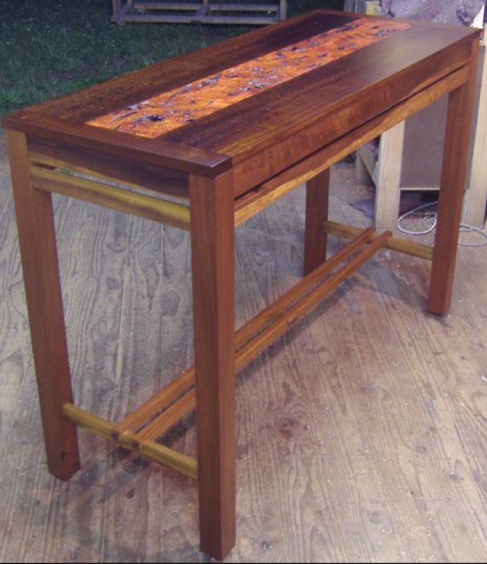 Red Gum Burl and Blackbean hall table.